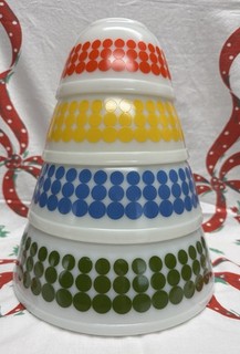 Vintage set Of Pyrex Mixing Bowls With Dots View item