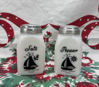 Large McKee Roman Arch Salt And Pepper With Black Sailboat Print View item
