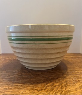 Hull Beehive Yellowware green stripe large mixing bowl View item