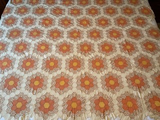 Vintage Grandmothers Flower Garden Quilt Top Hand Stitched 72” x 82” Unfinished View item