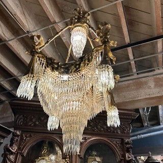 ANTIQUE FRENCH GILDED BRONZE CRYSTAL PALACE CHANDELIER CIRCA 1880 GORGIOUS View item