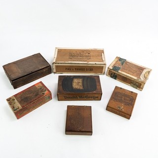 Lot of 7 Late 1800s Empty Wooden Cigar Boxes Vintage Antique View item