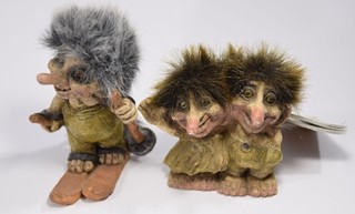 2x urige TROLL FIGUREN Lommedalen & NYFORM Norwegen Mythen Deko Vintage Zwerge View item