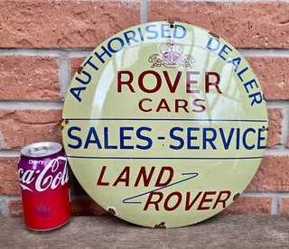 GROSSES RUNDES ROVER / LAND ROVER MOTOR AUTOS GEWÖLBTES EMAILSCHILD MANCAVE / GARAGE View item