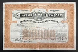 Sale046 👍 3x New York State Bond $10.000 Emergency Unemployment Relief 12/32 View item