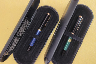 2 x Füllfederhalter 585 er 14 C Goldfeder M Pelikan in blau und grün View item