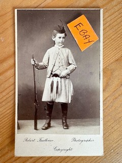 ORIG CARTE DE VISITE JUNGE IM SCHOTTISCHEN KLEID MIT SPIELZEUGGEWEHR FAULKNER BAYSWATER W View item