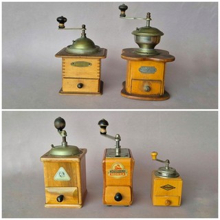5 alte vintage antike Kaffeemühlen Mokka Mühle Holz im Paket Lot Konvolut View item