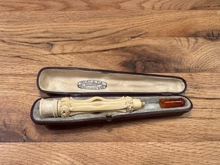 Antike Zigarettenspitze um 1900 – geschnitzt Bein – Etui Budapest – defekt View item