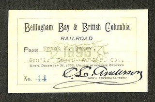 Bellingham Bay & British Columbia Railroad Railroad Annual Pass 1896 View item