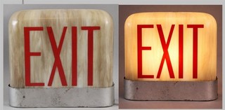 RARE Antique Etched & Painted Slag Glass Light Up Theater EXIT Sign Wall Sconce View item