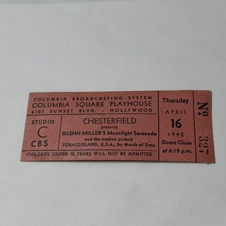 April 16 1942. Glenn Miller Ticket at CBS Studio Hollywood California View item