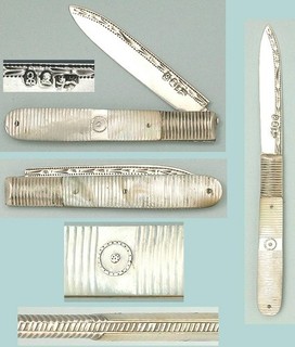 Antiguo cuchillo plegable de madreperla y plata de ley para frutas 1815 sellos distintivos View item