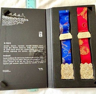 Vintage Red & Blue Silk Korean Bookmarks Gold Color Metal W/ Orig. box by Kawa View item
