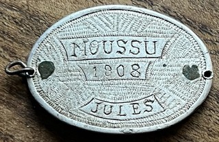 ANCIENNE PLAQUE d’IDENTITÉ . 1908 . SEINE 6° BUREAU .( Voir photos recto verso ) View item