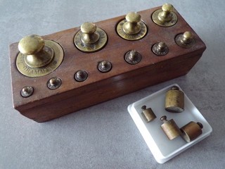 Lot de 5 BOITES de POIDS pour BALANCE Trebuchet Laiton Bois Apothicaire L28 View item
