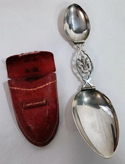 Antique 800 Silver Fleur de Lis Folding Medicine Spoon & Case 40.9 Grams Scrap View item