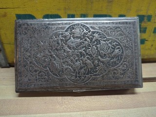 Vintage Silver Plate Cigarette Vanity Box Persian? Arabic? View item