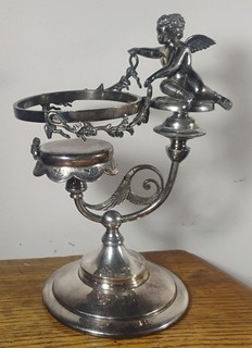 LOVELY ANTIQUE EDWARDIAN SILVER PLATE 3 TRUMPET VASE FLOWER EPERGNE CENTERPIECE preview