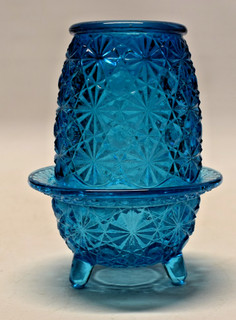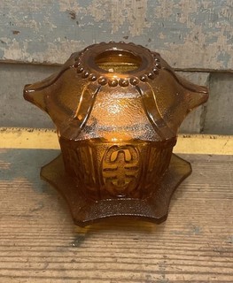 Vintage Indiana Glass Large Golden Amber Stars And Bars Fairy Lamp 6.5” X 4.5” View item