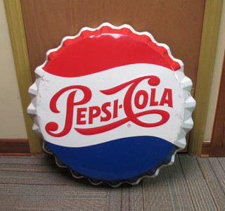Vintage PEPSI COLA Large Embossed Bottle Cap Soda Tin Sign w/Great Colors LQQK View item