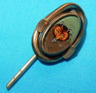 BEAUTIFUL ANTIQUE ENAMEL AGATE STICK PIN BROOCH WOLF CUB ENAMEL BADGE SCOUTING View item