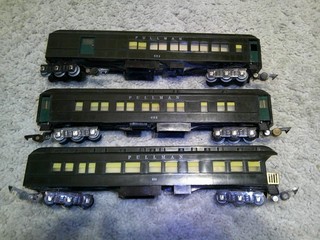 S GAUGE AMERICAN FLYER #652 653 & 654 DARK GREEN HEAVYWEIGHT PASSENGER CAR SET preview