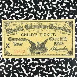 1893 U.S. Chicago World's Columbian Expo. Chicago Day Childs Ticket Lot#HZ277 View item