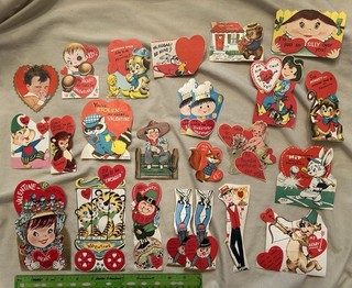 Vintage Valentines Day Card Lot 60 Raccoon Horse Rabbit Corn Dog Otter Bird View item