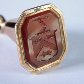 ANTIQUE FAMILY CREST HERALDIC COAT OF ARMS WAX WRITING SEAL INTAGLIO FOB PENDANT preview