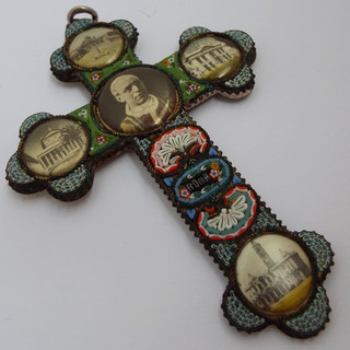 BEAUTIFUL LARGE ANTIQUE c.1920 MICRO MOSAIC RELIGIOUS CROSS WITH SCENES OF ROME View item