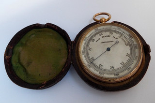 NICE CASED ENGLISH ANTIQUE VICTORIAN c.1890 GILT POCKET BAROMETER WORKING ORDER View item