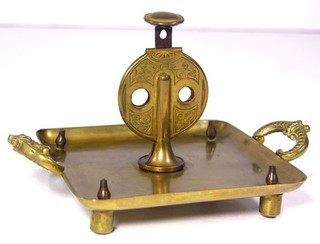 1890s BRASS COUNTERTOP FIGURAL CIGAR CUTTER DESKTOP PLUNGER TYPE CUTTER & TRAY View item