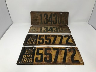RARE !! Lot of 2 Pair Canada Ontario 1919 & 1920 License Plates Rare 2 Pair View item