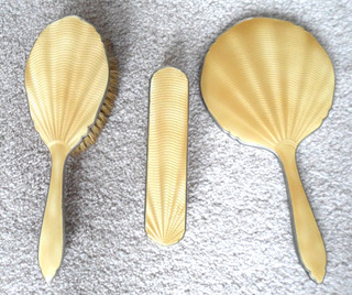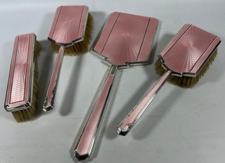 Silver & Pink Guilloche Brush & Mirror Set Barker Brothers Ltd Birmingham 1936 View item