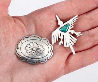 Vintage Western Native American Navajo Sterling Silver Pins Concho & Thunderbird View item