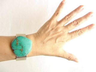 Vintage Native American Sterling Silver & Turquoise Navajo Bracelet Circa 1960 View item