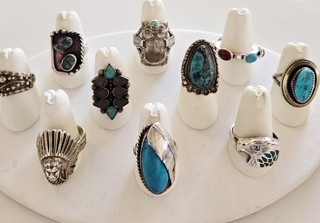 8 NATIVE AMERICAN SOUTHWESTERN YAZZIE TURQUOISE OPAL BROOCH LOT STERLING SILVER View item