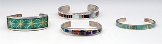 4 NATIVE AMERICAN ZUNI NAVAJO BEADWORK MULTI STONE BRACELET LOT STERLING SILVER View item