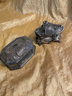 Vintage Pewter Jewelry Box Velvet Lining Pres. Mckinley U.S. Capital Scroll Work View item