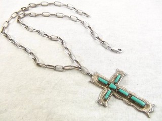 Zuni George Lupeta Leekity 29g 22" Sterling Turquoise Chain Necklace Native View item