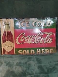 An Original 1907 Straight Sided Coca Cola Embossed Tin Sign Soda Pop View item