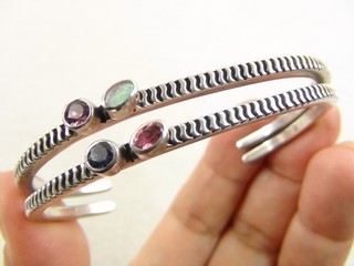 Navajo Elgin Tom 24g 6.5" 2 pcs Set Sterling Multi Stones Cuff Bracelet Native View item