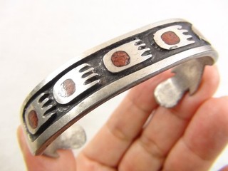 33g 6.5" Native Sterling Silver Coral Inlay Cuff Bracelet Navajo View item