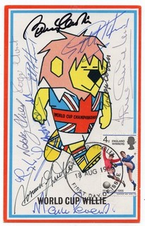 1966 WORLD CUP WILLIE CAMEO FIRST DAY POSTCARD SIGNED BY TEN ENGLAND WINNERS View item