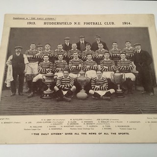 HUDDERSFIELD N.U.F.C B/W TEAM PHOTO WITH CHALLENGE & YORKSHIRE CUPS 1914 View item
