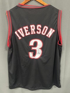 Maglia Allen Iverson HOF firmata nera Philadelphia 76ers AUTO JSA sticker taglia XL View item