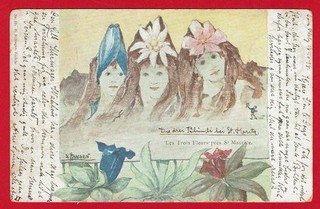 1898 Art Nouveau Volti di montagna I tre fiori Hansen Nolde Killinger litografia View item