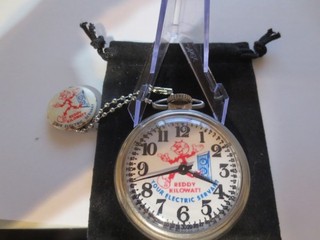 Orologio da tasca Westclox anni 60 16 Reddy Kilowatt tema pubblicitario quadrante e cassa funziona bene. View item