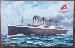 ANTIQUE ARTIST DRAWN COLOURED PPC WHITE STAR LINE T.S.S TITANIC AT SEA R.TUCKS View item